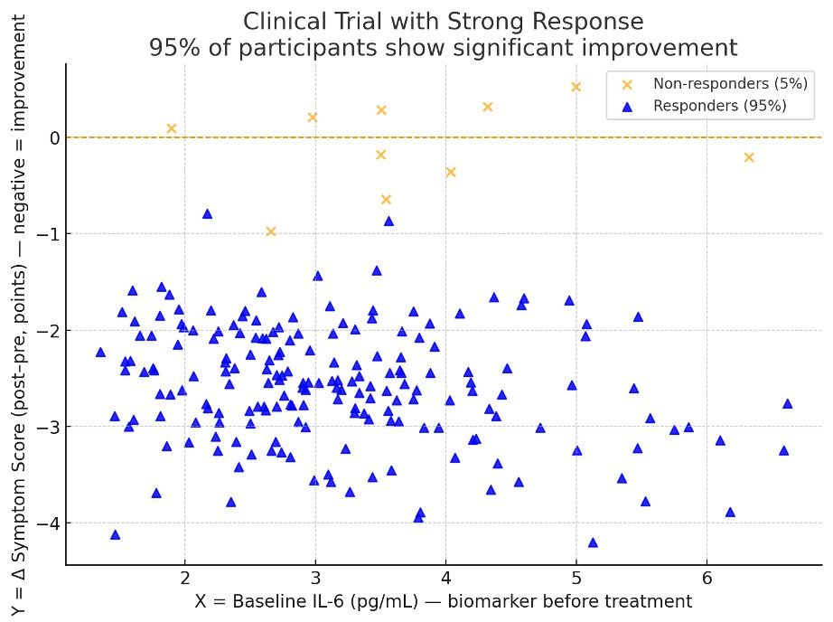 • Blue triangles = Responders (≈95%) — showed a