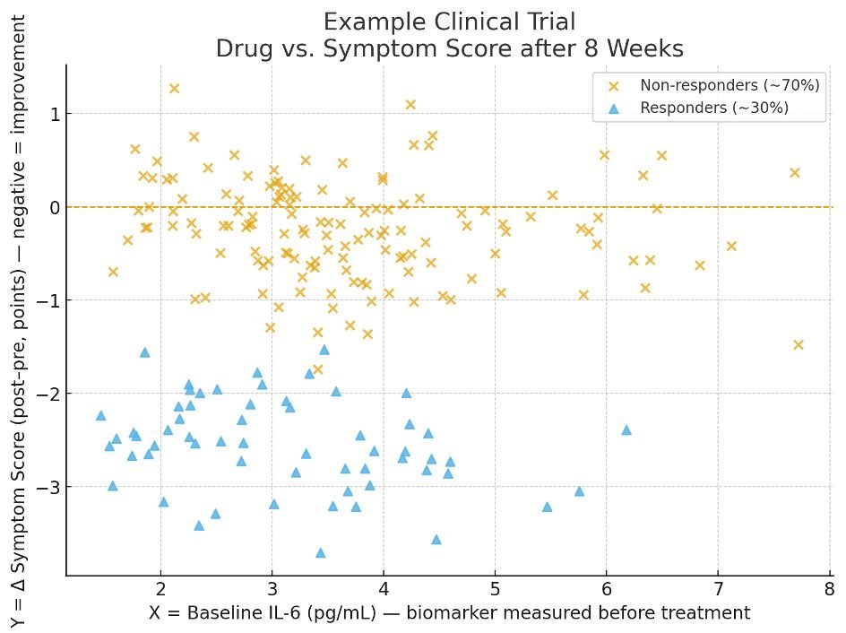 • Blue triangles = Responders (≈30%) — showed a large decrease in the